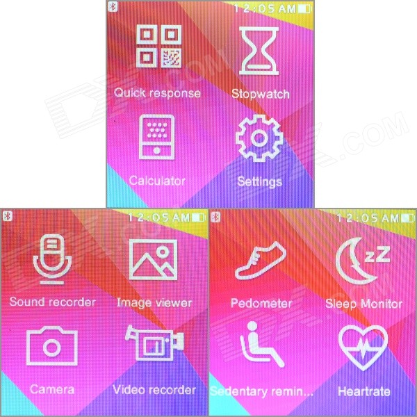 calendar / alarm clock / Bluetooth music play / Bluetooth connection / pedometer /