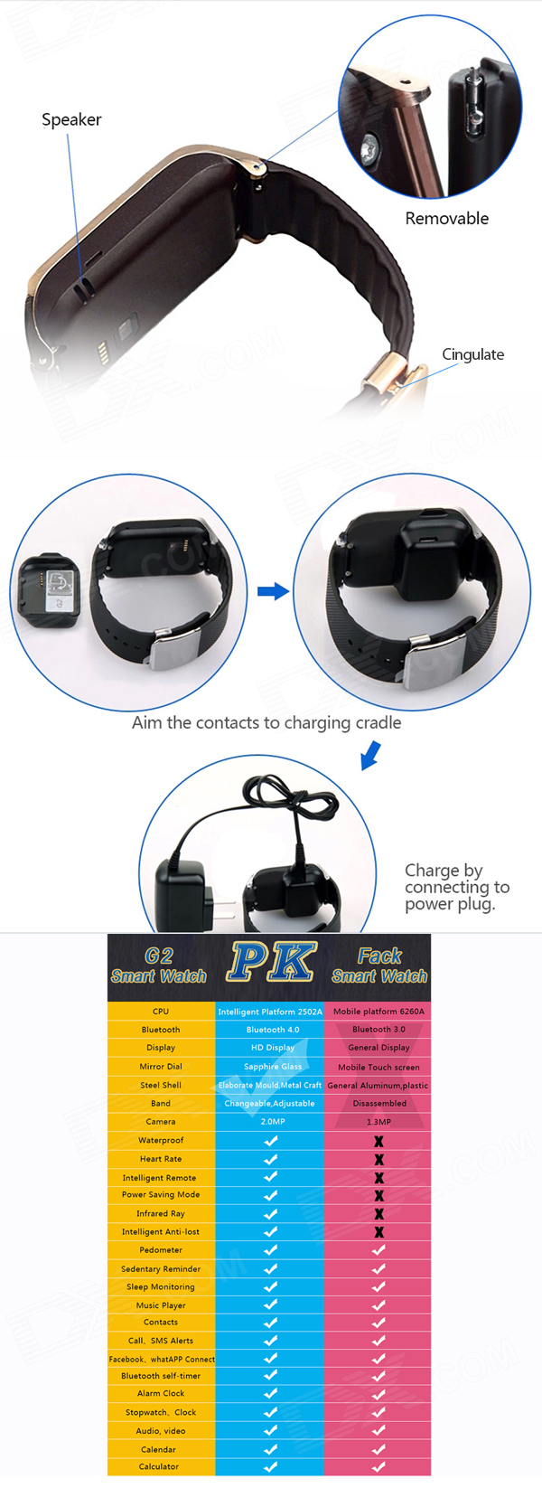 G2 SmartWatch for iOS Android Samsung and Iphone HD camera