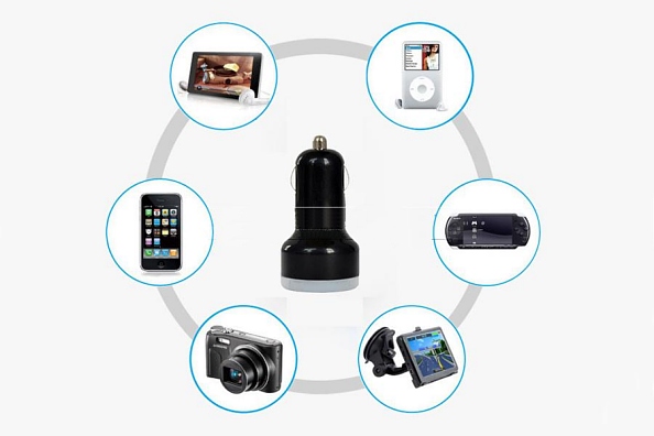 - Power Dual Port USB Car Charger charges your iPad, iPhone, iPod, HTC, Blackberry, MP3 Players, Digital Cameras, PDAs, Mobile Phones