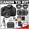 • B006C0WNK2 - Canon EOS Rebel T2i 18 MP CMOS APS-C Digital SLR Camera with 3.0-Inch LCD and EF-S 18-55mm f/3.5-5.6 IS Lens & Canon 55-250IS Lens + 58mm 2x Telephoto lens + 58mm Wide Angle Lens (4 Lens Kit!!!) W/16GB SDHC Memory+ 2 Extra Batteries + 2 UV Filters + Case + Accessory Kit