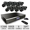 KGuard H.264 Tablet/Smart Phone/IE Viewing 8 CH Digital Video Recorder Surveillance Security System with 4 Indoor/Outdoor CCD Weather Proof IR Cameras Kit / Pre-installed 500 GB HDD: Camera & Photo. KGuard surveillance security system integrated a 8-channel DVR with 500GB hard drive and four CCD night version cameras providing all you need in one pack at an affordable price. 264 encoding has the advantage of fast, efficient recording and playback. The network access function bundled KGuard Exclusive, free surveillance software allows user to quikly setup and connect to IE browser, 3G smartphones and iPad / Android tablet PC for live viewing or remote control. By using USB mouse, front panel or remote control user can easily adjust settings based on different requirement.